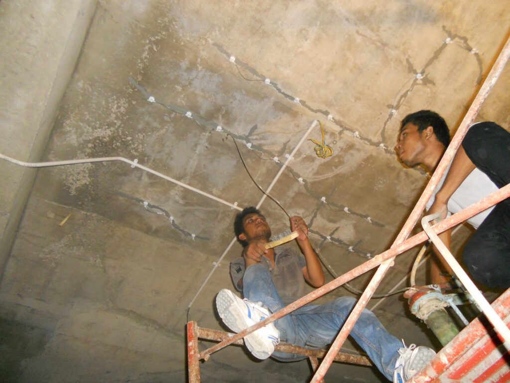 Layanan injeksi beton untuk memperkuat struktur dinding beton yang retak dengan memperbaiki strukturnya.
